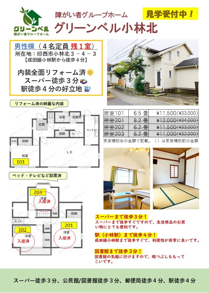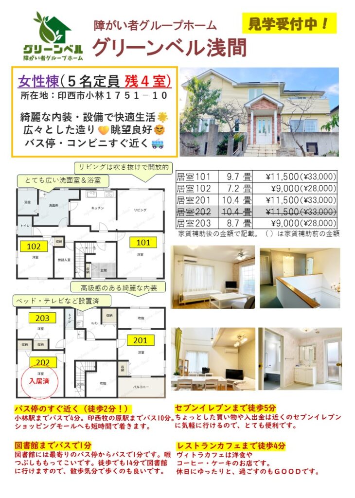 ・家賃 自己負担額 11,000~12,000円/月額※(家賃補助前の家賃:28,000~33,000円/月額)