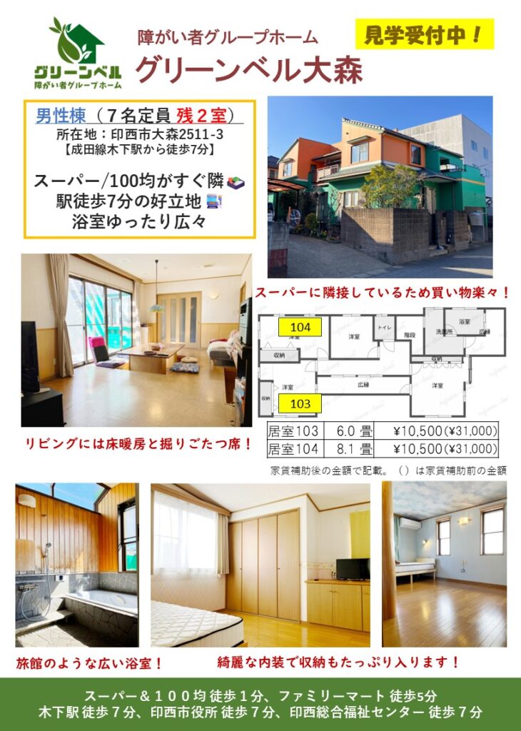 ・家賃 自己負担額 10,500円/月額※(家賃補助前の家賃:31,000円/月額)