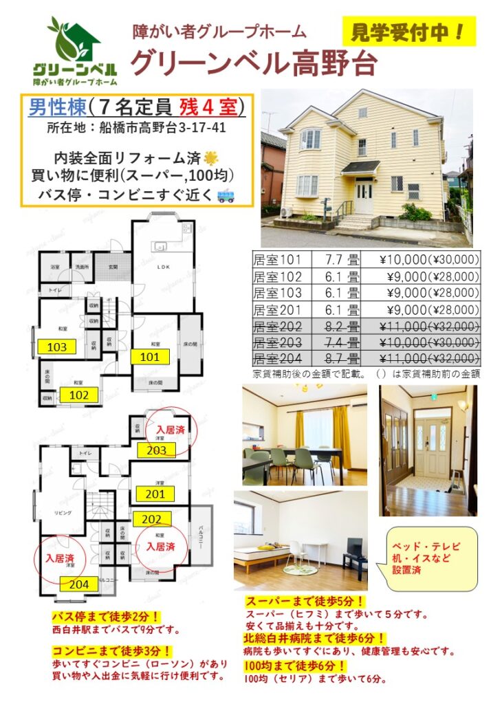 男性棟(7名定員 空き4室)