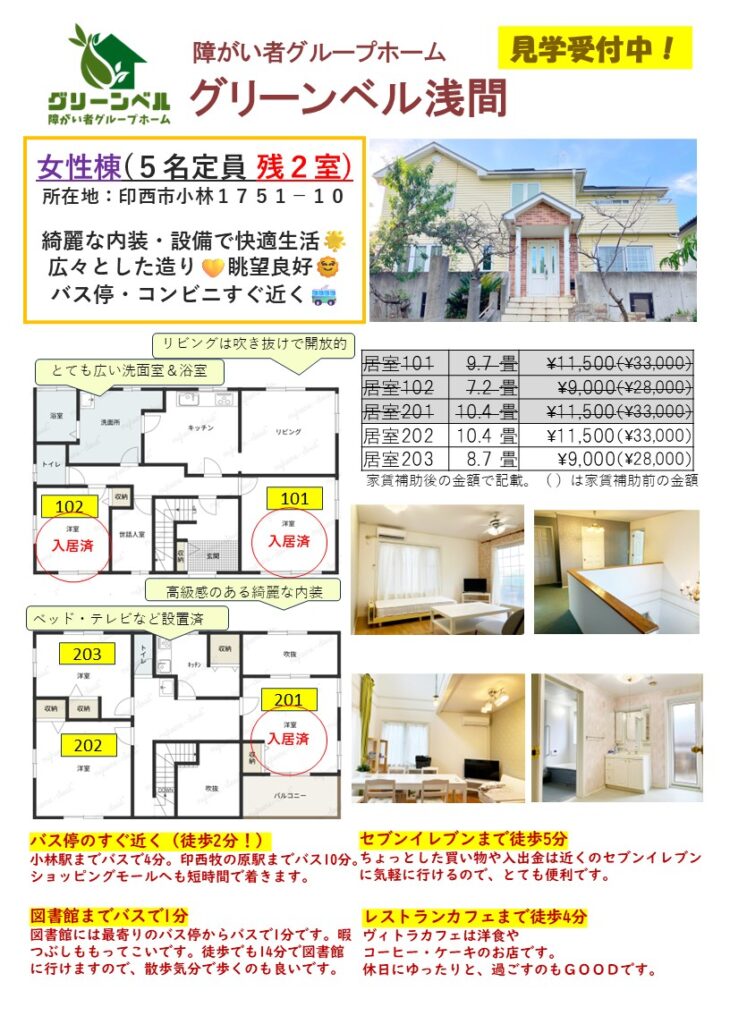女性棟(5名定員 空き2室)