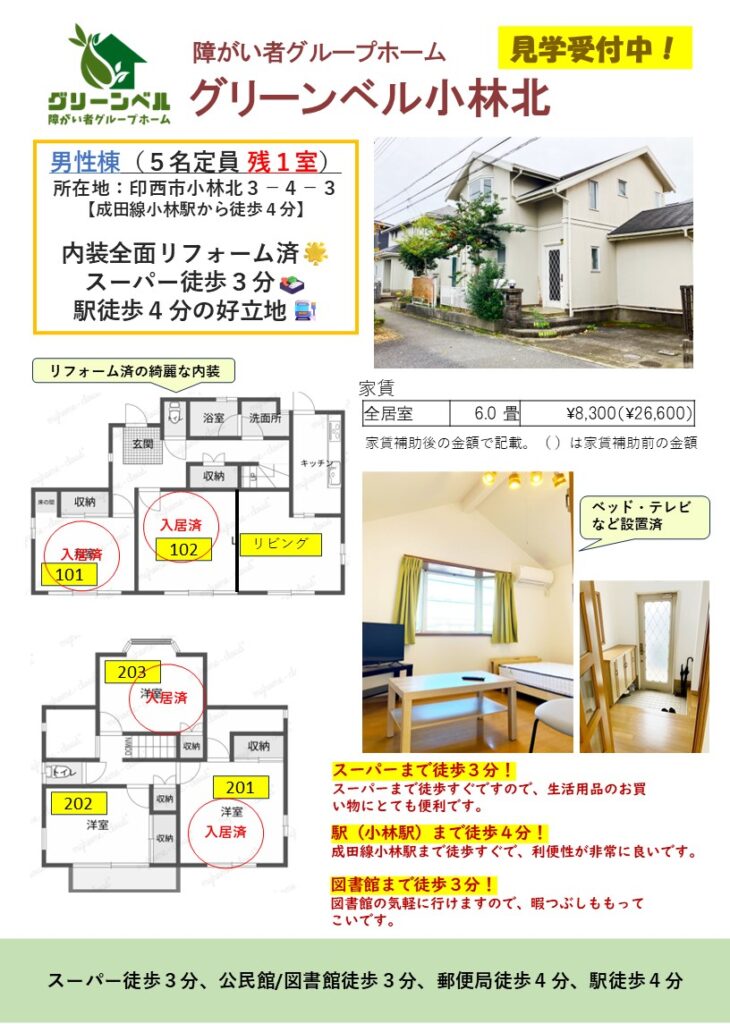・家賃 自己負担額 8,300円/月額※(家賃補助前の家賃:26,600円/月額)